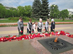 возлагали цветы к мемориальным доскам, Вечному Огню.