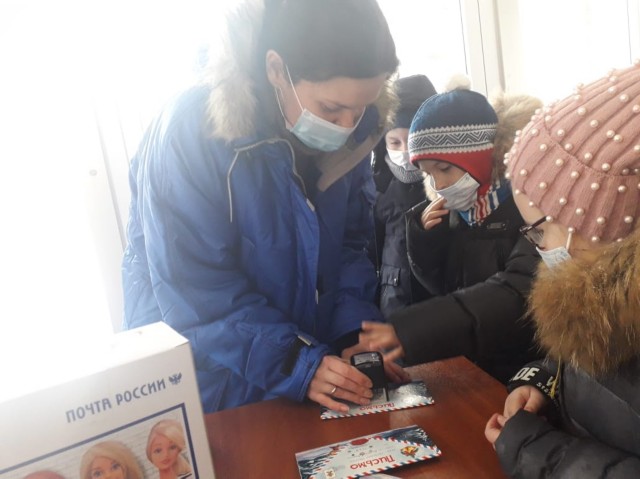 После этого ребята вместе с воспитателем и классным руководителем посетили новогоднюю почту.