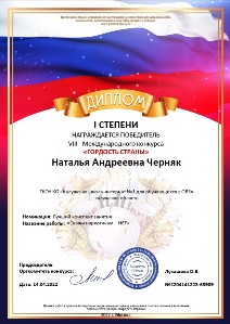 В рамках операции Черняк Н.А. приняла участие в VIII Международном конкурсе "Гордость страны" и стала победителем в номинации "Лучший конспект занятия" с методической разработкой занятия "Скажи наркотикам НЕТ!"