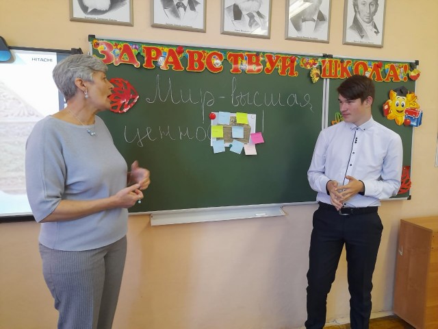 Обучающиеся начальных классов познакомились со значением слова "мир", узнали, что является символом мира, старшие ученики вспомнили историю страны и обсудили необходимость мира для каждого из нас.